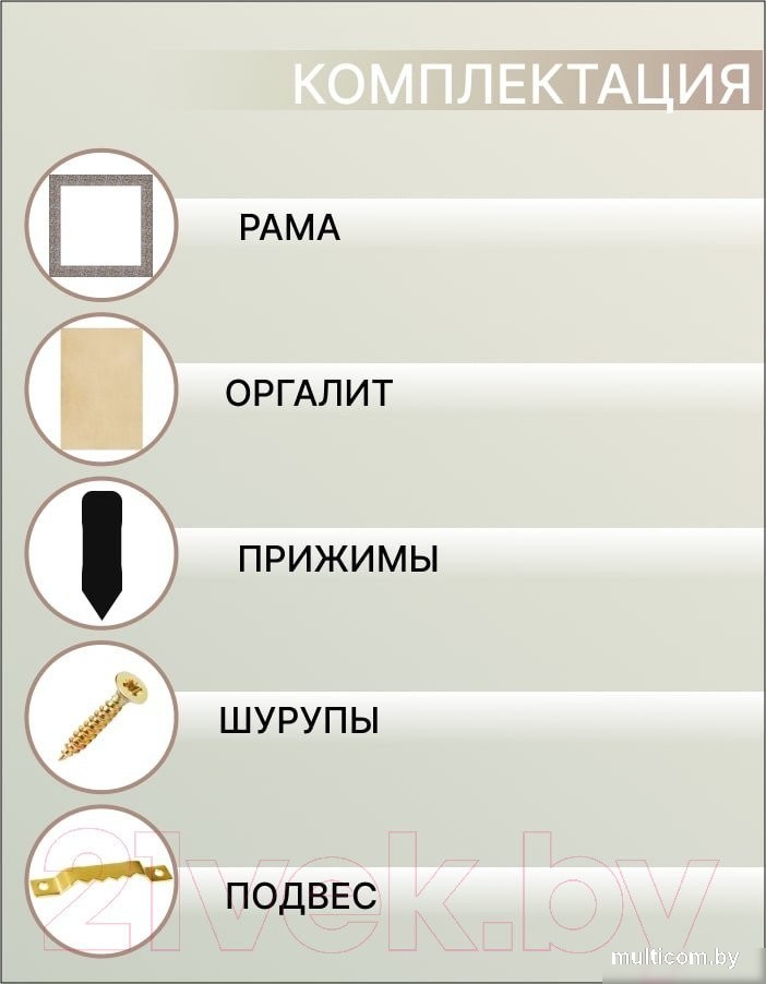 | Информация | - Багетная рама для картин станет отличным дополнением вашего интерьера, придавая квартире или офису особое настроение. - Эта фоторамка идеально подходит для рукописных картин, холстов, картин по номерам, фотографий, рисунков, алмазной мозаики, вышивок и пазлов. - Изготовленная из прочных материалов, рама обладает плотной основой ДВП и комплектом креплений для вертикального и горизонтального размещения. Она не деформируется и не выцветает со временем, что гарантирует долгий срок службы. - Эстетичный дизайн багета не отвлекает внимание, а, наоборот, подчеркивает красоту вашего творческого объекта, делая его более структурированным и завершенным. - Используя эту раму, вы продлите срок службы своих работ, предотвращая их растяжение. - Легко повесьте украшение на стену и отцентрируйте его для создания гармоничного пространства. |