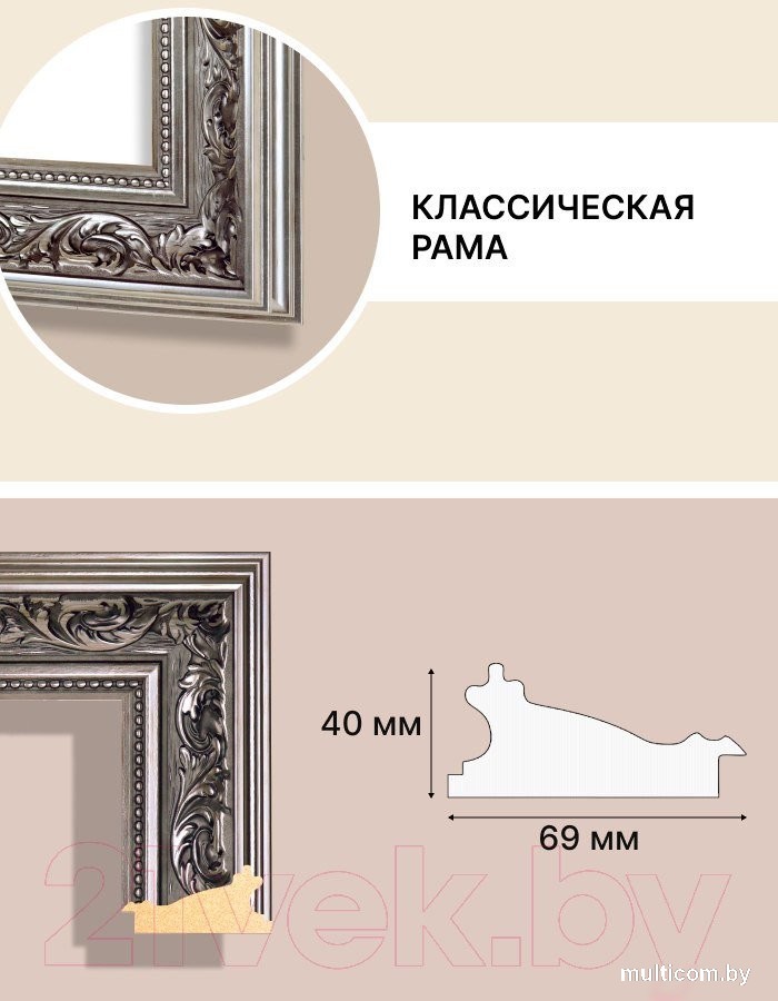 | Информация | - Багетная рама для картин станет отличным дополнением вашего интерьера, придавая квартире или офису особое настроение. - Эта фоторамка идеально подходит для рукописных картин, холстов, картин по номерам, фотографий, рисунков, алмазной мозаики, вышивок и пазлов. - Изготовленная из прочных материалов с плотной основой ДВП, рама гарантирует долговечность и сохранность формы, не деформируясь и не выцветая со временем. - Эстетичный дизайн багета не отвлекает внимание от вашего творчества, а, наоборот, подчеркивает его завершенность и структурированность. - Используя эту раму, вы продлите срок службы своих работ, предотвращая их растяжение. - Легко повесьте украшение на стену и отцентрируйте его для создания гармоничного пространства. |