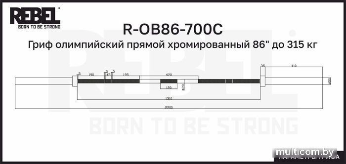 | Информация | Гриф олимпийский прямой хромированный предназначен как для коммерческого, так и для индивидуального домашнего использования. Соответствует олимпийским стандартам. Длина 220 см. Вес 20 кг. Максимальная нагрузка 315 кг. |