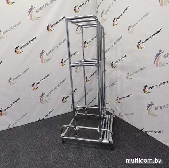 | Информация | ? Стойка для спортивного инвентаря Spektr Sport из хромированной стали предназначена для хранения 27 бодибаров. ? Конструкция стойки состоит из трех отделений, а на ножках установлены пластиковые накладки для защиты пола. ? Стойка изготовлена из прочной хромированной стали и предназначена для удобного хранения спортивного инвентаря. |