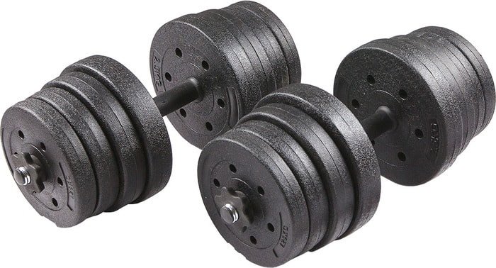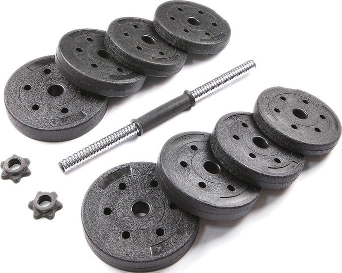 | Информация | В комплект поставки входи:2 грифа с пластиковой ручкой и гайками (длина 47 см)4 диска по 1.25 кг (диаметр 17.5 см/толщина 2.7 см)4 диска по 1.5 кг (диаметр 18 см/толщина 3 см)4 диска по 2 кг (диаметр 19.5 см/толщина 3.5 см)4 диска по 2.5 кг (диаметр 21 см/толщина 3.7 см) |
