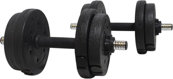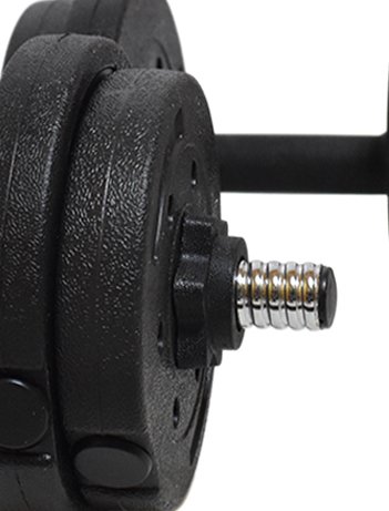 | Комплектация | - 2x грифа 35 см с пластиковой ручкой - соединительный гриф 40 см - 4x диска по 1,25 кг - 4x диска по 1 кг - 4 зажимных гайки |
