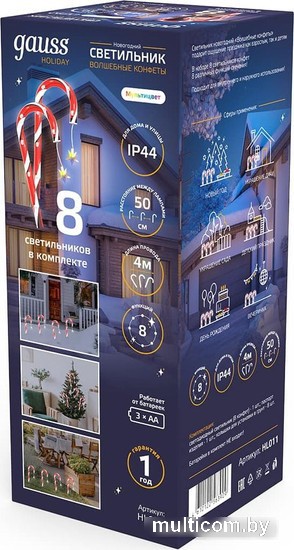 | Информация | Светильник новогодний Волшебные конфеты подарит ощущение праздника как взрослым, так и детям. В одном наборе доступно 8 светильников-конфет. Новогодняя гирлянда в виде леденцов изящная, стильная и нарядная. В считанные минуты преобразит ваш интерьер и сделает его праздничным. Просто закрепите гирлянду на стене, шторах или ёлке. Подходит для декора фотозон! |