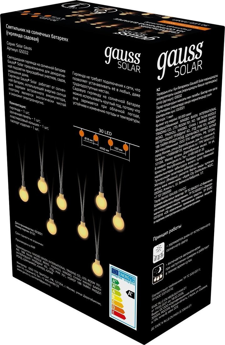 | Информация | Гирлянда Gauss Solar с 30 LED лампами в форме шаров позволит создать атмосферу уюта и волшебства вечером. Почему стоит выбрать именно гирлянду Gauss Solar? Гирлянду можно разместить вокруг дома, между деревьями, опоясать ею беседку или протянуть вдоль дорожек в саду. 30 больших шаров, работающих от солнечной панели, будут светить 8 часов, не требуя затрат на электричество. Солнечная панель будет подзаряжаться днем даже в пасмурную погоду, чтобы вечером ваша гирлянда засияла всеми 30 огнями. Лампы-шары обладают высокой прочностью и устойчивы к воздействию влаги и погодных условий, что делает гирлянду подходящей для использования на открытом воздухе. Гирлянда может включаться автоматически в темное время суток и выключаться при появлении дневного света. Сделайте свой сад, беседку, террасу или балкон сказочными, используя садовую гирлянду Gauss Solar. |