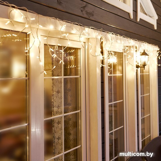 | Информация | Гирлянда «Бахрома» («Айсикл») представляет собой гибкий горизонтальный шнур-шину, к которому через определенные промежутки крепятся вертикальные нити разной длины со светодиодами. Она имитирует сосульки и может послужить эффектным и оригинальным решением при декорировании карнизов домов, арок, фасадов зданий, витрин магазинов, а также стать элементом декора внутренних интерьеров помещений. Благодаря использованию в гирлянде светодиодов, ее отличительной особенностью является превосходная яркость и низкое энергопотребление по сравнению с лампами накаливания. При длине 5 метров гибкая направляющая имеет 48 вертикальные нити от 10 до 70 см. Данная гирлянда имеет теплый белый цвет свечения и предназначена для использования как внутри помещения, так и снаружи. Ее особенностью является наличие мерцающих светодиодов, которые привлекают внимание и значительно преображают украшенную поверхность (мерцает каждый пятый светодиод). Важной особенностью данного исполнения является каучуковый провод, благодаря которому гирлянду отличает высокая надежность в условиях российского климата, даже в самых холодных регионах страны! |