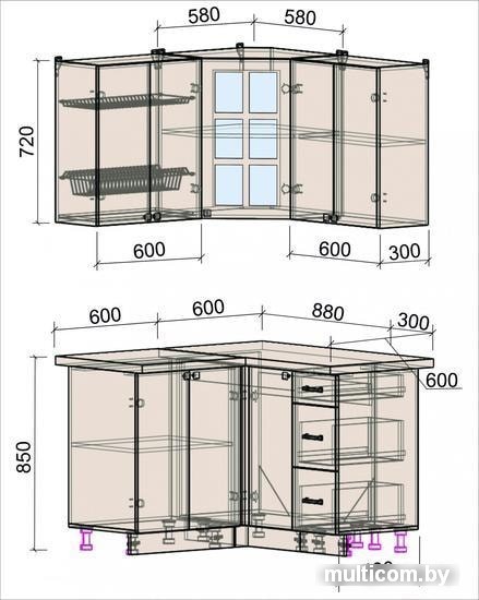 | Высота нижних шкафов | 85 см |