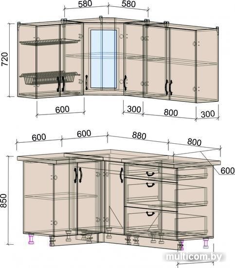 | Высота нижних шкафов | 85 см |