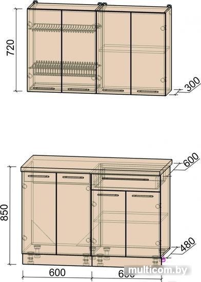 | Глубина нижних шкафов | 60 см |