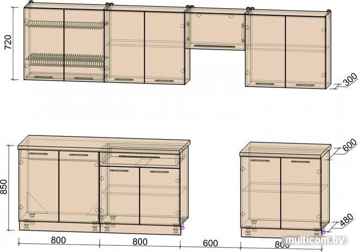 | Высота нижних шкафов | 85 см |
