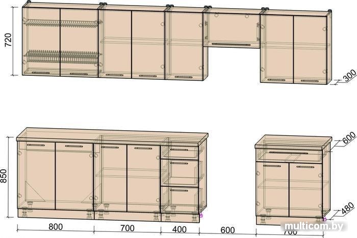 | Высота нижних шкафов | 85 см |