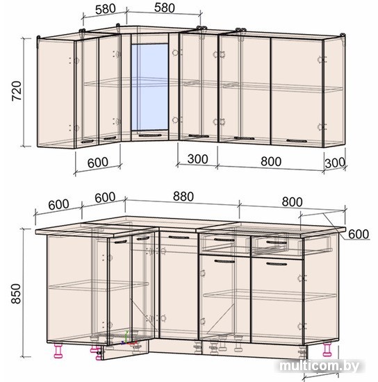 | Высота нижних шкафов | 85 см |
