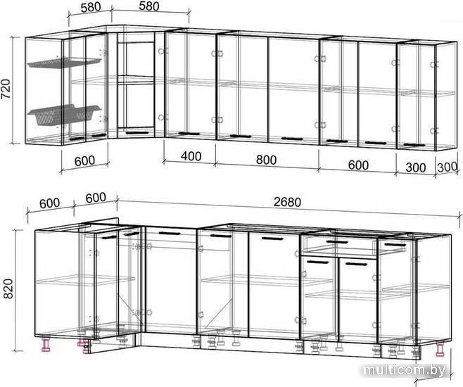 | Высота нижних шкафов | 82 см |