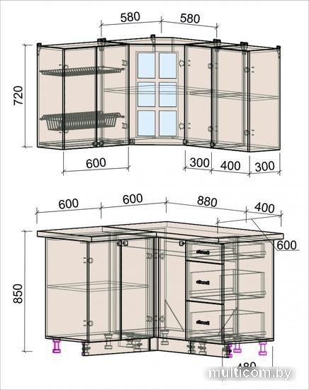 | Высота нижних шкафов | 85 см |