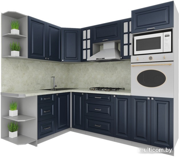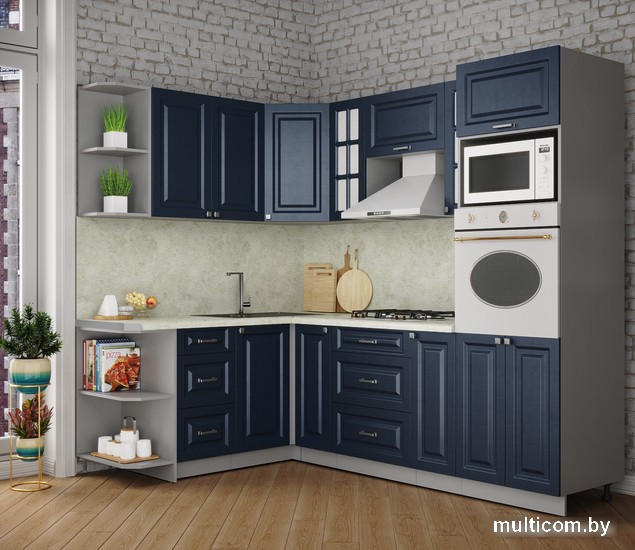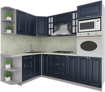 | Информация | ? Обратите внимание! Готовая кухня Интерлиния Мила Деко 1.68x2.4 левая (индиго/индиго/опал светлый) не включает в себя кухонную мойку. |