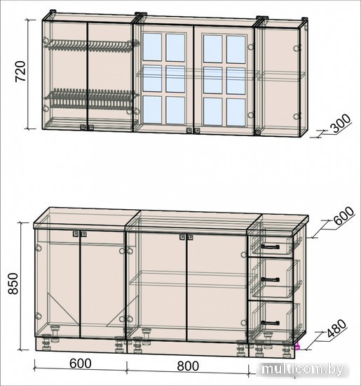 | Верхние шкафы | со стеклом |