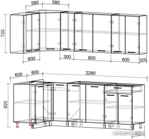 Интерлиния Мила Лайт 1.2x2.3 без столешницы (бетон/антрацит)