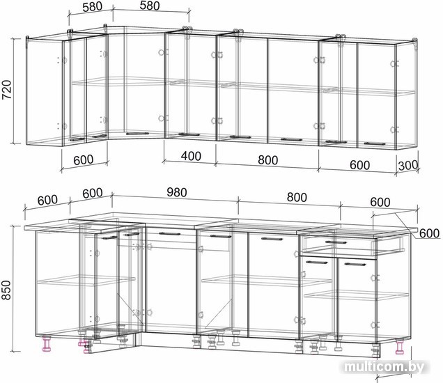 | Высота нижних шкафов | 85 см |
