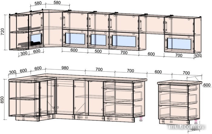| Высота нижних шкафов | 85 см |
