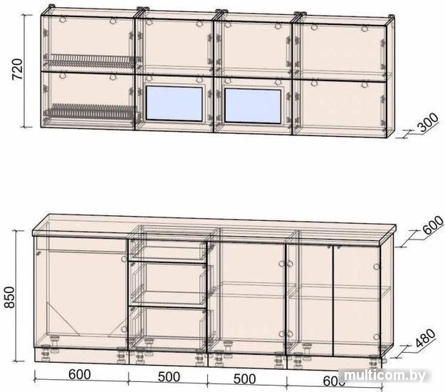 | Высота верхних шкафов | 72 см |