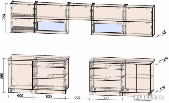 | Высота нижних шкафов | 85 см |