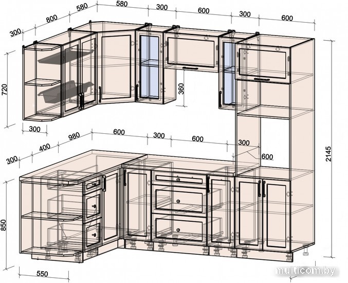 | Верхние шкафы | со стеклом |