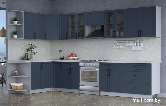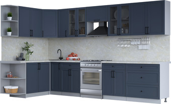 | Информация | ? Готовая кухня Интерлиния Тренд 1.7x3.5 левая (индиго/индиго/опал светлый) не включает в себя кухонную мойку. |