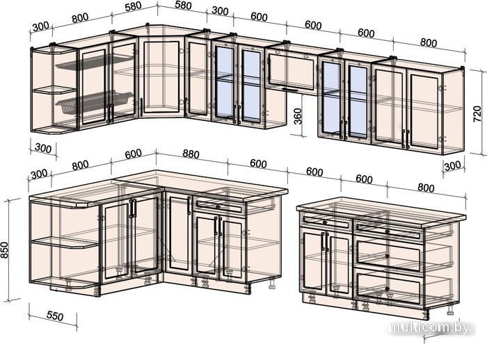 | Верхние шкафы | со стеклом |