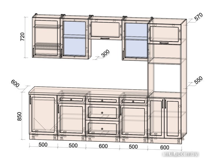 | Верхние шкафы | со стеклом |