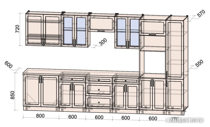 | Верхние шкафы | со стеклом |