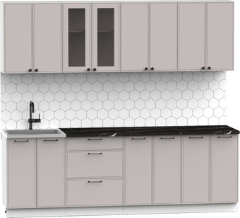| Информация | ? Кухня Интермебель Лион-18 2.4м (луна софт/тунис) - это идеальное сочетание минимализма и функциональности. ? Фасады изготовлены из МДФ, покрытые пленкой ПВХ, что обеспечивает гладкость матового покрытия (soft-touch) и прямые линии фрезеровки «Лион». ?? Обратите внимание, что кухонная мойка не входит в комплектацию. |