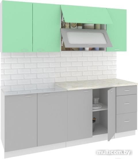 Кухня Кортекс-мебель Корнелия Мара 2.0м (салатовый/серый/марсель)