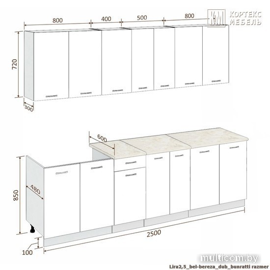 | Высота нижних шкафов | 85 см |