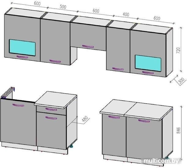 | Высота верхних шкафов | 72 см |