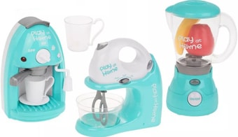 | Состав набора | миксер, кофемашина, блендер, миска, чашка (2 шт), еда (банан, яблоко) |