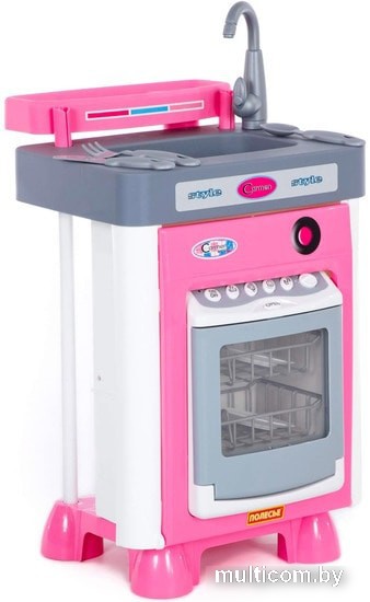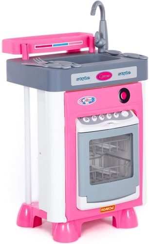 | Информация | Посудомоечная машина со звуковыми эффектами (реалистичность работы данного игрового элемента достигается за счет специального резервуара для воды, расположенного в дверке посудомоечной машины. После включения игрушки, вода разбрызгивается между двумя прозрачными стенками дверки и создается эффект реальной работы, а игрушечная посуда остается сухой). |