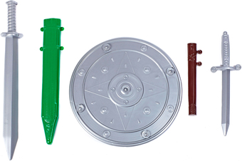 | Состав набора | щит (диаметр 300 мм), меч (длина 465 мм), кортик (длина 310 мм) |