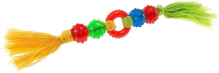 | Информация | Надежная и долговечная, изготовленная из термопластичной смолы и плетеной веревки из хлопка, эта игрушка надолго увлечет вашу собаку. Веревка удобна для захватов и бросков в качестве предмета апортировки, а также игр в перетягивание каната с вашей собакой. Центральная часть состоит из кольца и шариков со слегка неровной поверхностью, которые идеально подходят для жевания! Их массажный эффект помогает содержать десны и полость рта вашей собаки в полном здравии. Идеально подходит для собак любых размеров. Игрушка изготовлена из тщательно отобранных материалов и обеспечивает абсолютную безопасность вашему питомцу. |