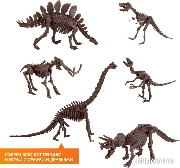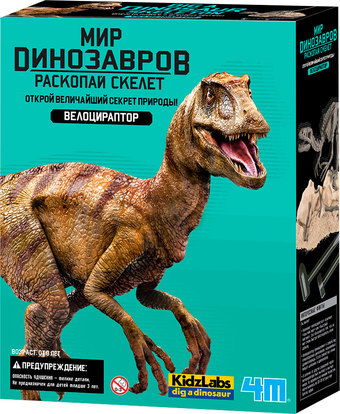 | Состав набора | Гипсовый брикет (с костями динозавра внутри) Молоточек со скребком Зубило Кисточка Мягкий воск для соединения костей скелета Поддон (из бумаги) Инструкция на русском языке |