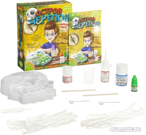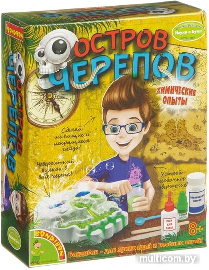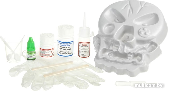 | Информация | Этот научно-познавательный набор поможет развить у ребёнка интерес к такой увлекательной науке, как химия. Представьте, что Вы попали на необитаемый остров, полный разных чудес, среди которых встретился вулкан необыкновенной формы в виде черепа! С его помощью можно узнать про реакции щелочей и кислот, углекислый газ и различные спецэффекты, провести ряд забавных экспериментов, устроить необычное извержение! |
