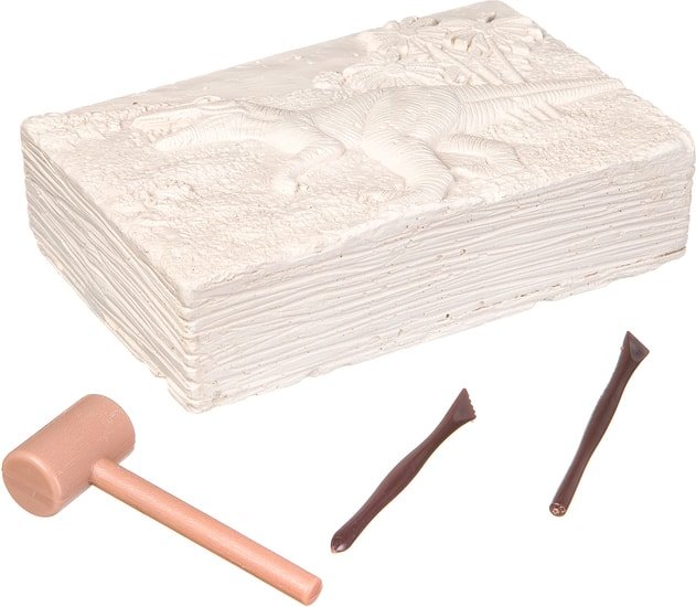 | Состав набора | В наборе гипсовый блок для проведения раскопок со скрытым внутри скелетом динозавра, инструменты для раскопок. |