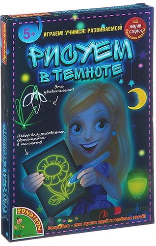 | Информация | Этот удивительный набор создан специально для любителей всего необычного С этим набором ребята смогут создать яркий светящийся в темноте рисунок Сделать это совсем несложно нужно нарисовать рисунок специальной волшебной ручкой с ультрафиолетовым фонариком. С помощью этого замечательного набора можно провести множество интересных опытов, связанных с веществами и жидкостями, которые имеют флуоресцентные компоненты и светятся в темноте. Это увлекательное занятие требует внимания и сосредоточенности, а еще это очень интересно |