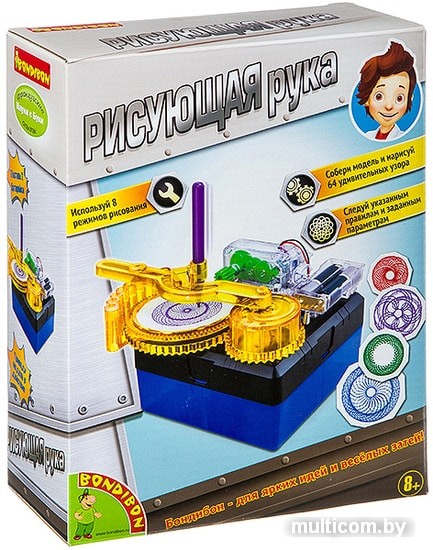 | Информация | Собери модель, способную нарисовать 64 удивительных узора! Звучит сложно? Всё просто - защелкни все ключевые компоненты и модули, чтобы модель заработала. Познакомься с устройством электрической цепи, собери целую лабораторию с наборами Французских опытов Науки с Буки. |