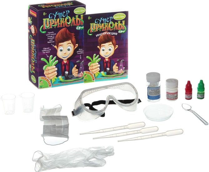 | Информация | Всегда весело и забавно разыграть друзей так как никто! Этот набор предназначен для различных розыгрышей и приколов с помощью слизистого геля. Слизь это полутвердое вещество. Оно превращается из жидкого в гелеобразное путем изменения химических связей между молекулами. Этот процесс превращения называется полимеризацией. Например, миксин это маленькая рыбка, которая может произвести ведро слизи! Даже растения производят слизь водоросли выделяют гелеобразную субстанцию. На самом деле альгинат натрия, который используется наборе, сделан из водорослей. С различными слизистыми гелями можно придумать массу веселых шуток! Попробуй и убедись сам! |