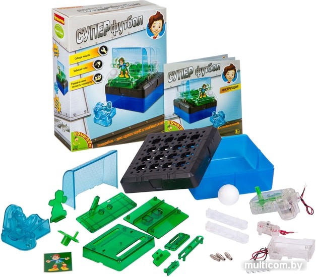 | Информация | Футбол, без преувеличения, самая популярная игра в мире, в которую с удовольствием играют и дети, и взрослые. Для игры необходимы две команды и мяч, а главная цель игры - забить гол во вражеские ворота, обхитрив вратаря. Устроить футбольную тренировку теперь можно прямо в своей комнате, и для этого не нужен ни мяч, ни 11 игроков. Суперфутбол - это научная игра, представляющая собой соревнование с вратарем и заодно прекрасную возможность потренироваться в ловкости, скорости реакции и остроте зрения. Чтобы победить, Вы должны попасть мячом в ворота, пока вратарь двигается из стороны в сторону. Развивайте концентрацию и ловкость рук с этим набором от Бондибон! Набор расскажет о принципах работы электрических цепей и электродвигателей. Соберите целую лабораторию с наборами французских опытов науки с Буки! |