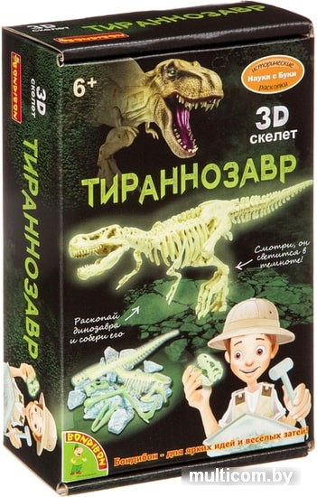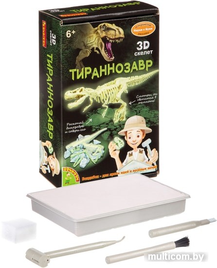 | Информация | Прикоснитесь к древнему миру вместе с Историческими раскопками Науки с Буки от Bondibon! Проведите настоящие исторические раскопки и посмотрите, что находится внутри блока для раскопок! Да, это скелет самого крупного древнего хищника - тираннозавра! После раскопок его необходимо собрать. А в темноте он светится! Соберите коллекцию древних доисторических артефактов. Инструкция по проведению раскопок находится на оборотной стороне упаковки. В комплекте - все необходимые инструменты для раскопок. Bondibon - для ярких идей и веселых затей! |