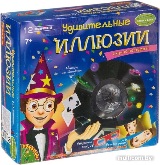 | Информация | Королевство кривых зеркал и необычных картин можно открыть для себя и ребенка с новым набором Удивительные иллюзии! Позвольте на мгновение обмануть Ваш мозг, погрузившись в мир удивительных и фантазийных форм и рисунков. Обман зрения надолго захватит ребенка и окунет в удивительный мир иллюзий. В набор входят 12 экспериментов для сочетания определенных цветов, форм и рисунков. Иллюзии возникают за счет искажения изображений с помощью зеркал и света. Ваш ребенок почувствует себя настоящим волшебником, удивляя вас и своих друзей необычными опытами. |