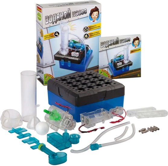 | Информация | Водяной насос из набора работает, основываясь на простой механической системе. Водяной насос качает воду из экологичной коробки, чтобы она заливалась в ракету. Когда вода заполнит ракету почти до максимума, пенопластовый шарик вытолкнет крышку с ракеты. Затем вода в ракете потечет обратно в экологичную коробку. Эта концепция похожа на систему оборотного водоснабжения. |