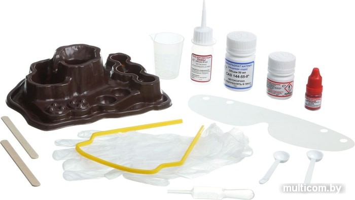 | Состав набора | Иллюстрированная инструкция, пластиковая модель вулканического острова, краситель, сода, ложечки, лимонная кислота, пена лавы, пипетка, стакан, палочки для смешивания, перчатки, защитные очки. |