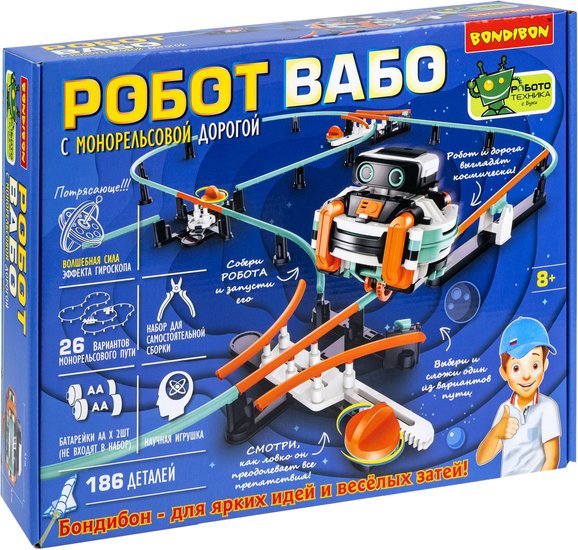 | Информация | Протестируйте перспективный вариант транспортировки с помощью этого оригинального робота. Робот очень умен, работает по принципу гироскопа и выполняет невыполнимое – перемещается по монорельсу на единственном колесе. Двигатель приводит гироскоп в движение, и робот балансирует на монорельсе. Это фантастика! Всего 3 ключевых элемента трёхсторонний разделитель, английская стрелка и устройство качели и вы можете построить уникальное трековое королевство! Особый механизм позволяет роботу не только набирать скорость и останавливаться, но еще и менять направление на перекрестках. Возможны 26 различных вариантов составления пути следования, а может быть, Ваша фантазия подскажет вам и совершенно уникальный, ни на что не похожий вариант. Приготовились – начинаем захватывающее путешествие с РОБОТОМ ВАБО! |