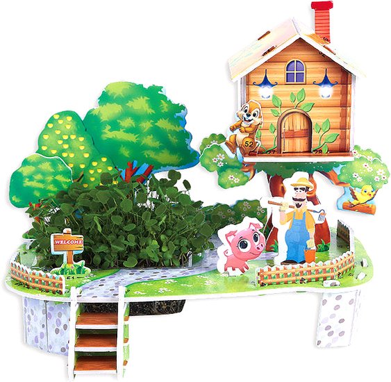 | Информация | Размер в собранном виде:20*14*14,5см. Все детали соединяются друг с другом без помощи клея. На игровом поле имеется место для мини-клумбы. Для самостоятельного выращивания в наборе имеются семена и грунт. Игрушка помогает развить логику, зрительную память и усидчивость. Материал : картон, пластмасса. Упаковка 14,5*21,5*4см. |